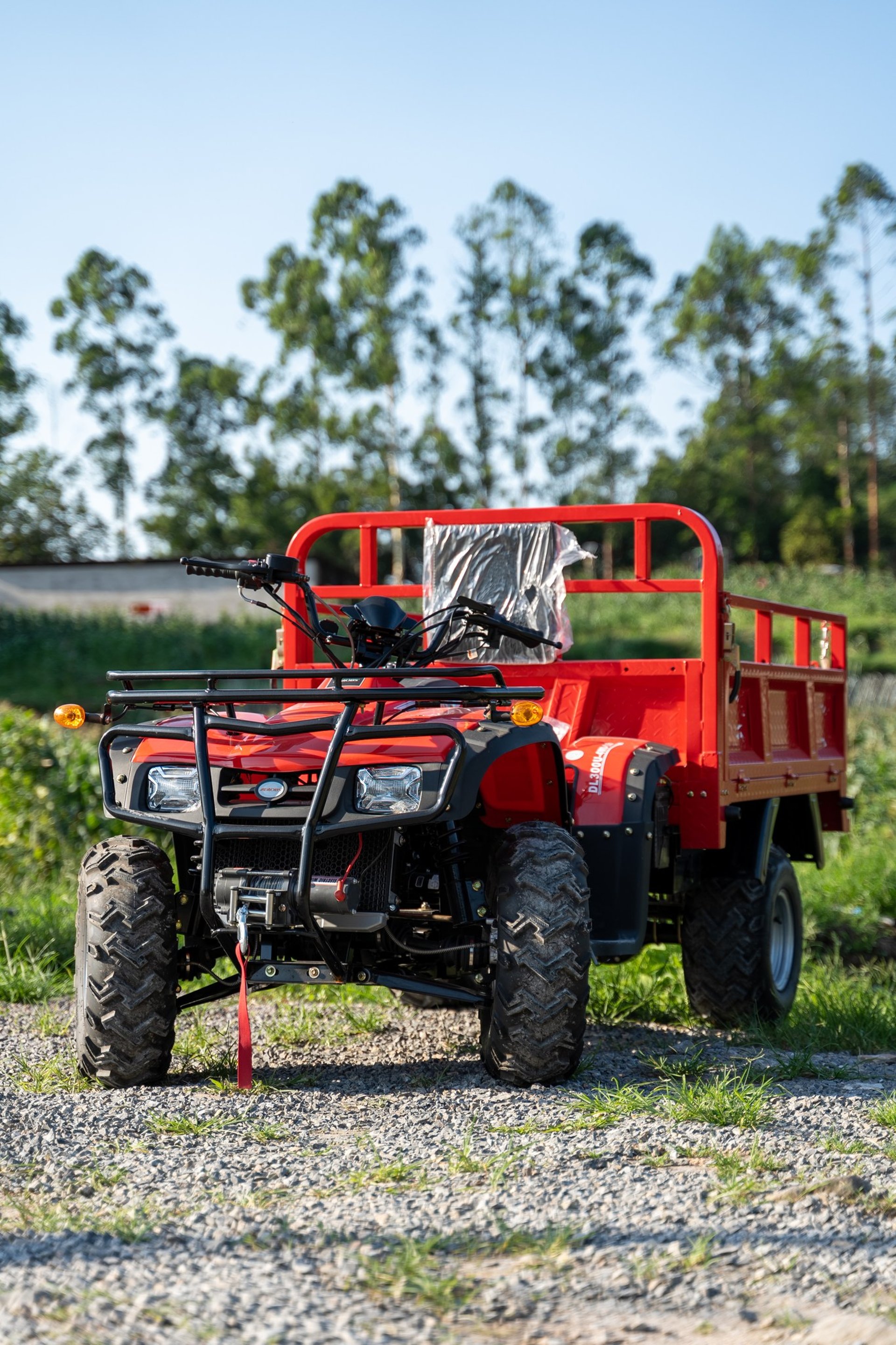La cuatrimoto agrícola es una herramienta ideal para el campo mexicano gracias a su motor de 17 hp, tracción 4×4 y chasis robusto con capacidad de hasta 800 kg. Ofrece opciones como winch frontal, sistema hidráulico para descarga rápida y techo protector, además de contar con neumáticos todoterreno, suspensión eficiente, frenos confiables y tablero digital. Combina potencia, versatilidad y confort para mejorar la eficiencia en labores agrícolas y trabajos en terrenos difíciles.